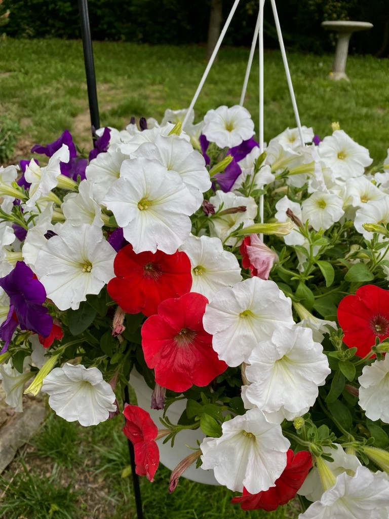 The petunia basket, William picked to put on the hook we got too. I am holding back on more annuals for now, as the dogs tend to tramp a lot of my flower bed, so if I keep it a bit smaller and snugger, that will make us all happier. Oh! I am not sure I mentioned, but the garden center has a great wine selection, craft beer selection and a charcuterie selection too. Some people love coffee shops, give me Rhoads Garden Center and Nursery in Circleville all day long, they speak my language!