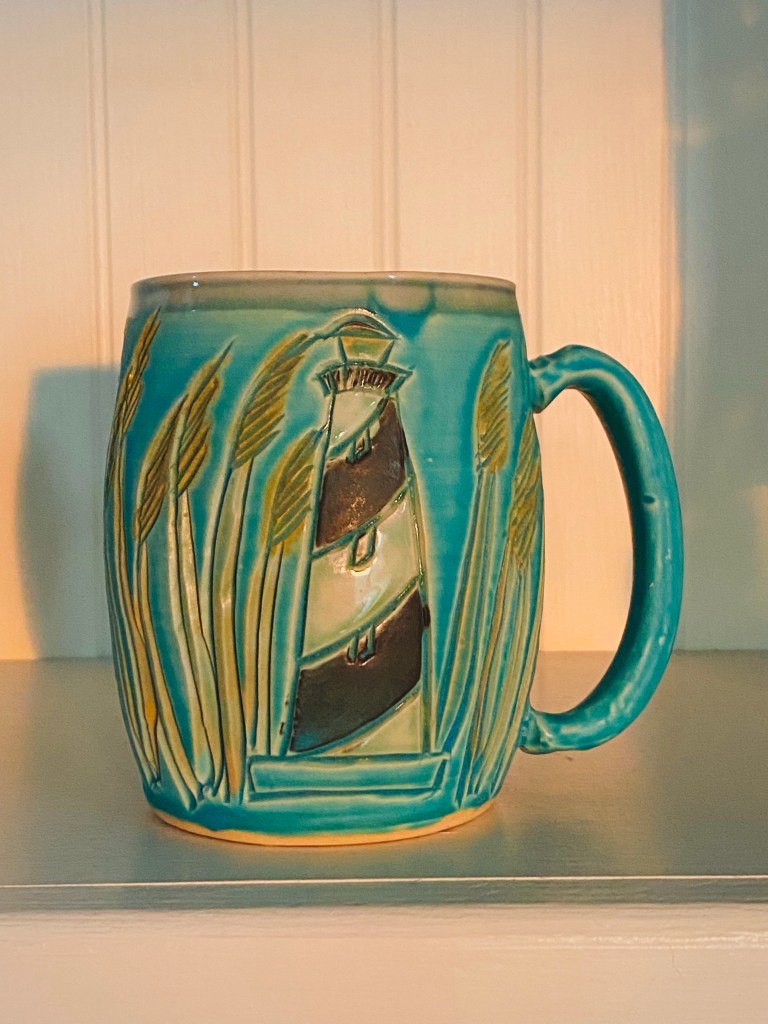 Twelve years ago I came to the Outer Banks for the first time. I went into a gallery and purchased to pottery mugs. I still have those mugs, loved them so much that we bought pottery gifts from the makers, and I bought Bill one of his favorite mugs from them too. I was disappointed to learn that the makers were in Oregon, as I wanted to support local artisans, but clearly I loved the product enough to keep purchasing from them.