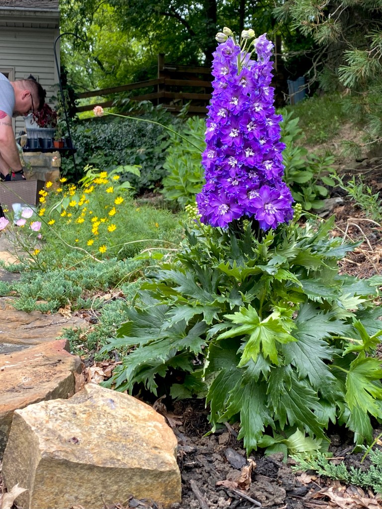 Today we went to Lowe’s, as we received some free plants elsewhere that needed planting, and I needed some potting soil. The danger is taking me anywhere with plants, or wine. I did acquire a new plant at Lowe’s, whoopsy. It is such a beautiful perennial, it will go perfectly in my pollinator garden. This beauty is called Glitzy Bee Delphinium, love at first sight, y’all!!!