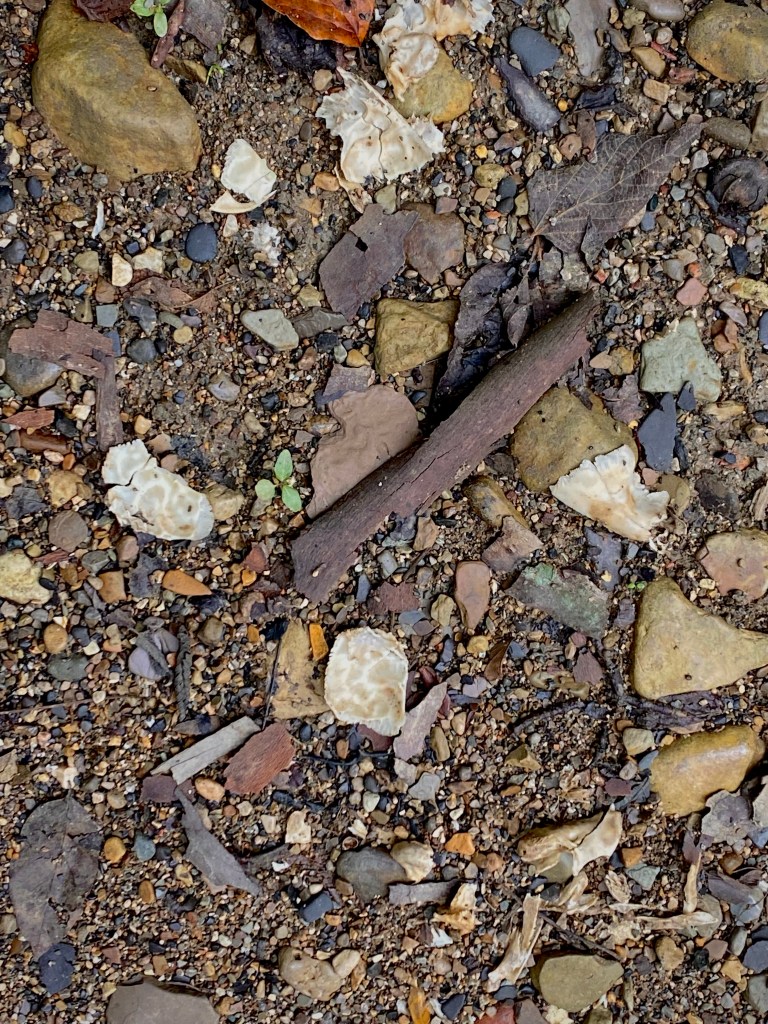 We came across an animal’s remains. What was it? How long had it been here? Did it wash up here when the creek was full, or did it die here when the creek was dry? I really don’t know, but odds are it was a raccoon or possum, then again, I can’t rightly say. I said a little prayer for it regardless.