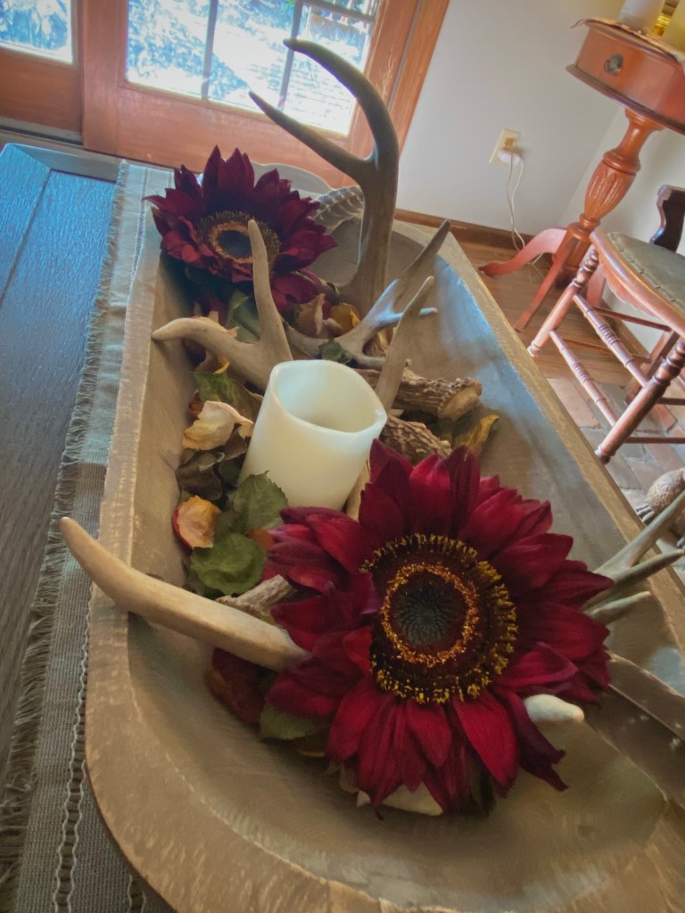 Check out all of those roses! Two fresh bouquets drying naturally! I love dried roses, and when the petals fall off, I just throw them in the dough bowl with the antlers.