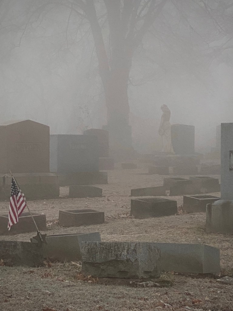 I love the silhouette this statue cuts in the frozen fog, so ethereal and beautiful.