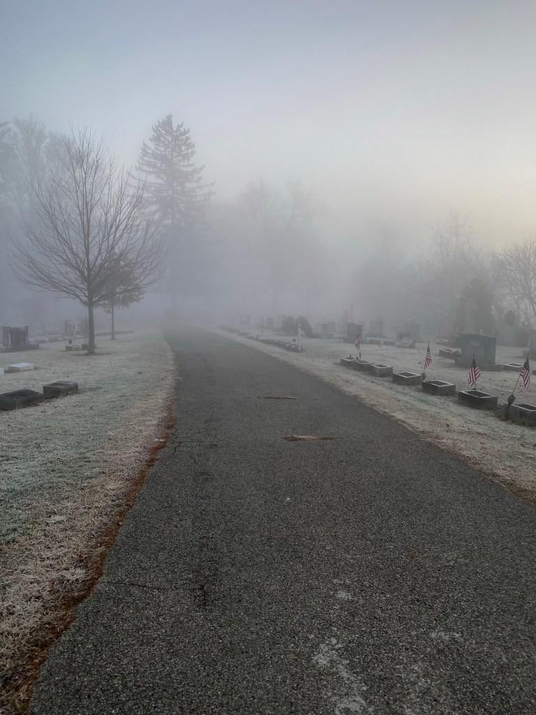 I started my day with an icy walk in the cemetery with Bill. It was cold, but lovely!