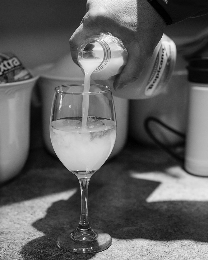 Here we go! Now, keep in mind, everyone likes their mimosa proportions different than the next person, so Bill will be doing a custom pour for each of us.