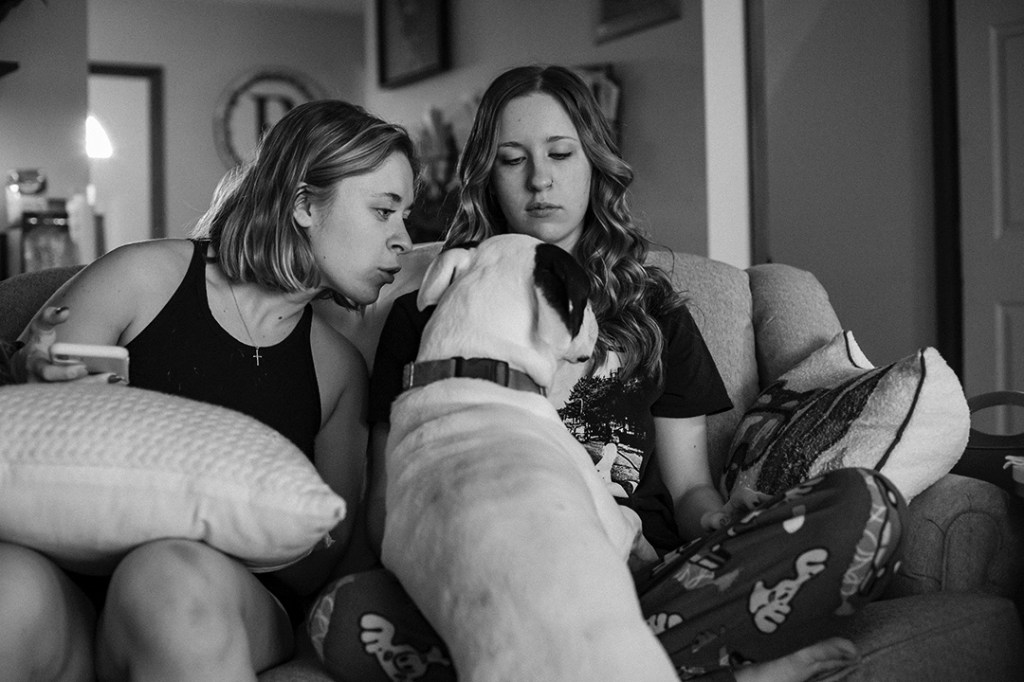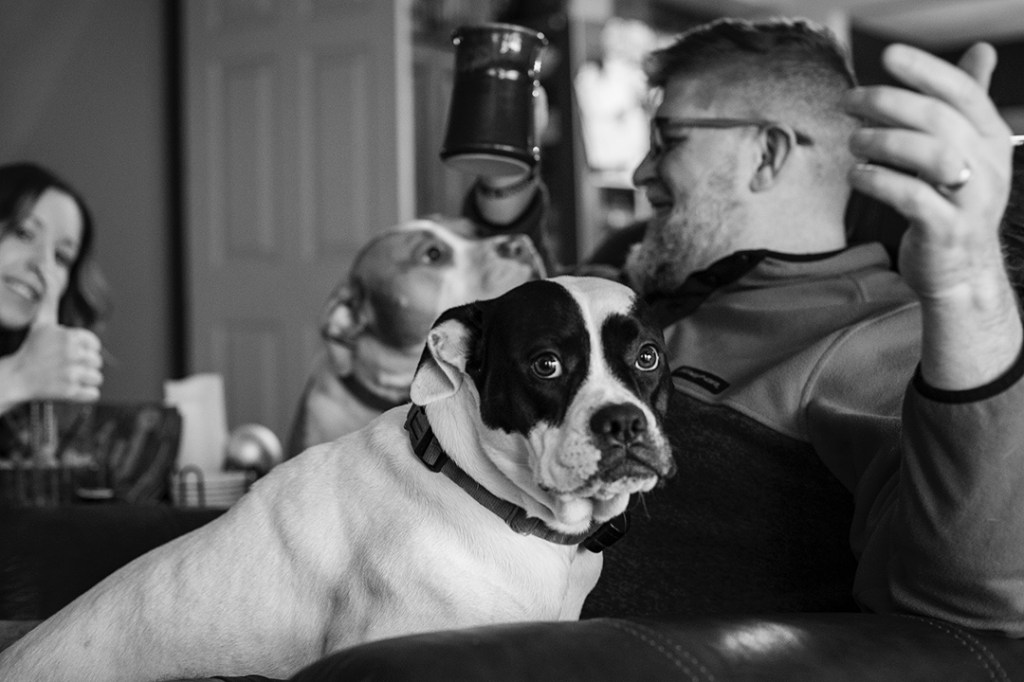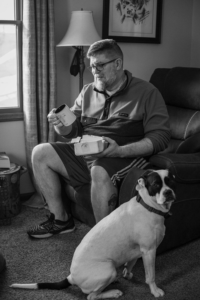 This year, I decided to document our Christmas morning with photos, in black and white. We had decided the night before that we would have a very relaxed Christmas morning. We, or 3 of us, slept until 7:15, 2 had coffee, one had a camera. Two of the dogs were not too keen on the camera, one couldn’t get enough. Bill and I made up a tasty breakfast casserole, which I did not take photos of, but we did eat before opening gifts. Here are the photos of coffee time, waiting for Brooke’s arrival downstairs, and before we ate our morning casserole. I hope you get some good laughs, I know we did!