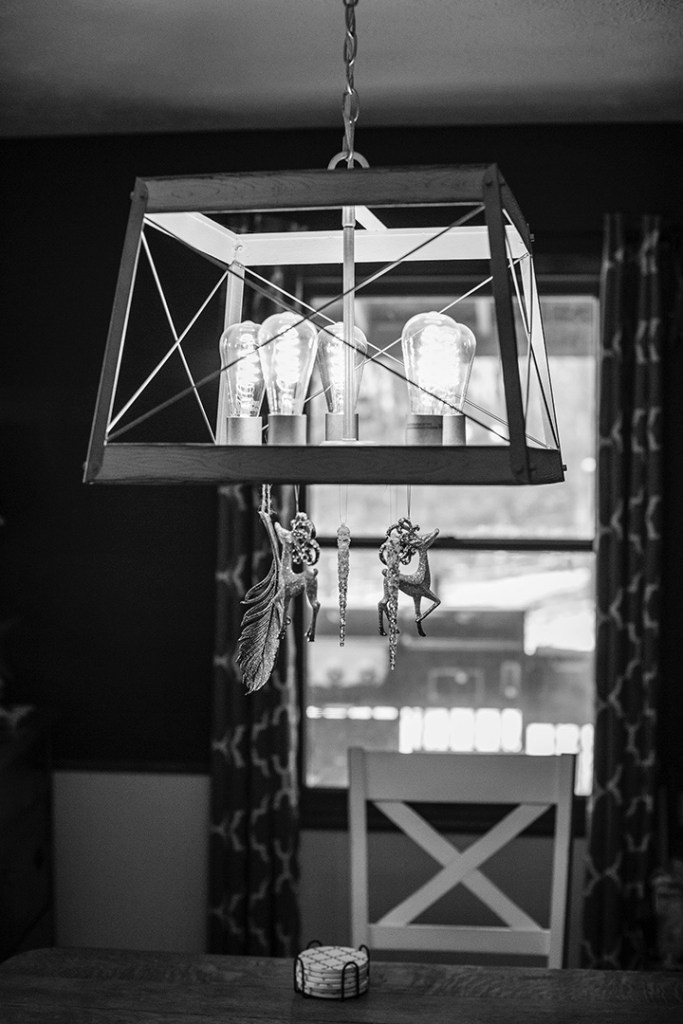 Yes, I did hang ornaments from the light fixture. Bill often works at the table and I wanted to make sure he had every opportunity to get glitter all over himself, on his things, and to wear it around as often as possible. You know, just to remind him of the joy and shine of the season. He loves glitter, and at no point did he ask if we could stop getting objects with glitter. Not that I can easily recollect anyhow.